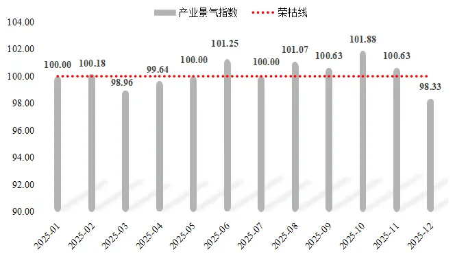 2025年,衡水工程橡胶产业景气指数整体稳中向好,其中仅3月、4月和12月景气指数略低于荣枯线,其余月份则均位于景气区间运行。具体运行情况如下图所示: