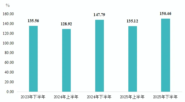 产业发展指数先降后升,下半年指数再创新高,达150.46点,较2024年下半年提高2.67个百分点。细分指数中,产业规模指数与经济效益指数均呈先抑后扬运行态势,且经济效益指数抬升幅度更为明显。